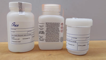 Kit contains 3 bottles for each sampling location and return shipping labels.