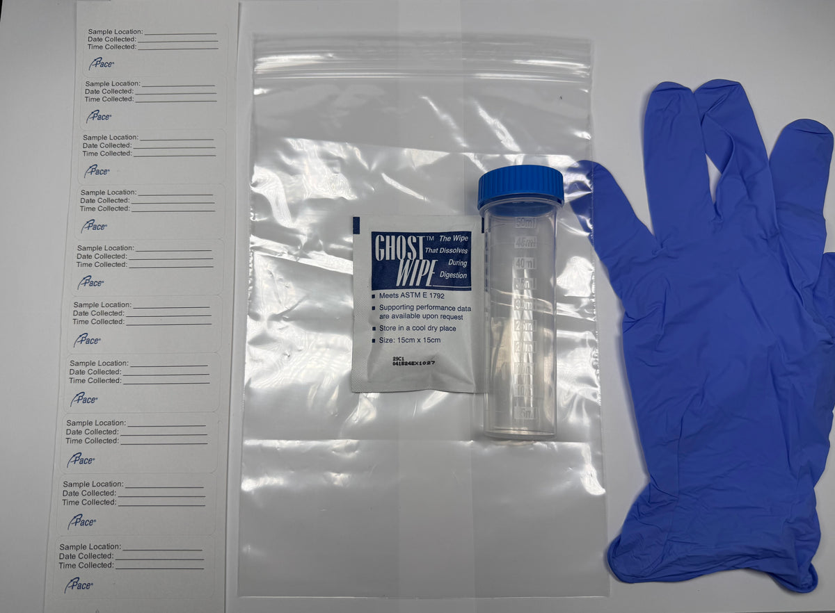 (10) Ghost wipes for sampling metals on surfaces, moistened with deionized water, individually sealed packets. SKC 225-2414